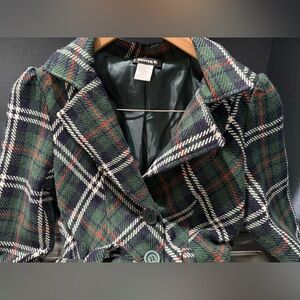 VTG Better Be Green Red White Plaid Holiday Christmas Jacket Trench Coat