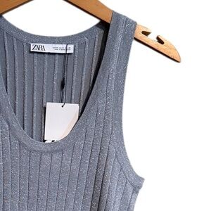 Zara Women’s Size Medium Ribber Silver Top. Brand New With Tags