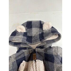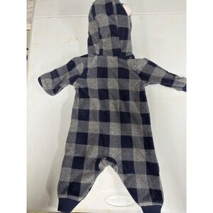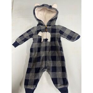 Carters 3 month one piece fleece with hood. Blue & grey checked. Hood has little ears. Front zipper.