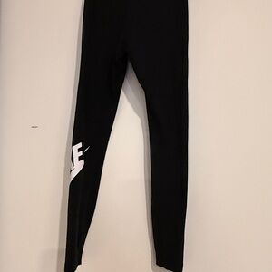 Sleek black leggings featuring bold white Nike logo. Ideal for fitness and everyday style.