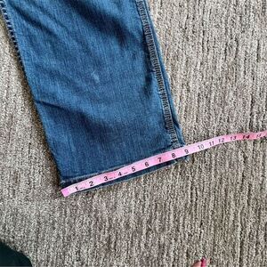 These jeans are pre-owned in excellent condition, with one minor mark that may be part of the natural color.
