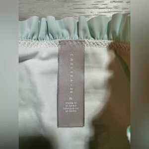 Chelsea 28 Smocked Strapless Tie Waist One Piece Swimsuit, Aqua Stripe, Size Med