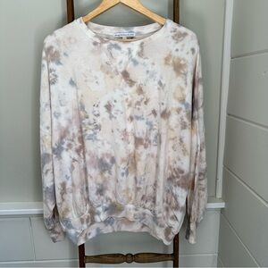Young Fabulous & Broke Sweatshirt Top Cream Beige Blue Tie Dye Size Med