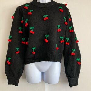Farm Rio Black Cherry Adorned Crewneck Pullover Sweater, Sz M *See Description*
