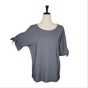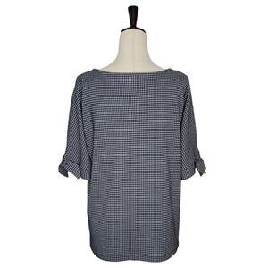 Talbots Navy Blue & White Gingham Tie Elbow Sleeve Blouse Size L