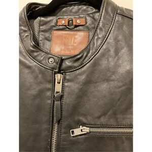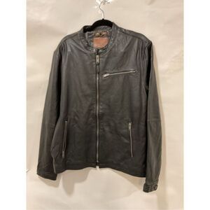 FRYE Men's Black Nappa Long Sleeve Lamb Leather Full Zip Motorcycle Jacket XL