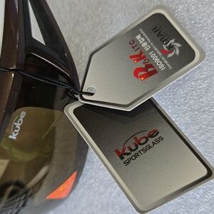 New with tags, Kube Zero-P Active Sports Sunglasses with a bronze brown frame, Polycarbonate Sports lens UV400, zip up hard case and cleaning cloth. A decentered lens in sunglasses is engineered to eliminate distortion and eye strain by shifting the lens's optical sweet spot from the geometric center to directly in front of your pupil, particularly in curved or wrap-around frames. This technology ensures clear vision without the "fish-eye" effect or headaches caused by looking through warped, non-aligned lenses. They provide sharp, distortion-free vision, allowing for precise depth perception, which is essential for high-speed activities. By correcting for optical distortion, they prevent headaches and fatigue commonly associated with cheaper, non-decentered wraparound sunglasses. The technology improves clarity when looking through the sides of the sunglasses, rather than just straight ahead.Lightweight and easy to wear.