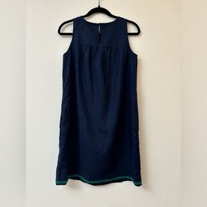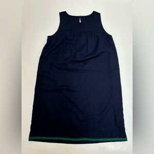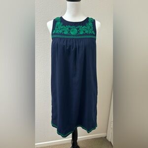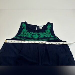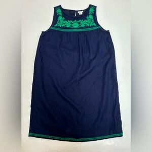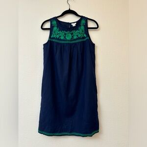 J Crew linen embroidered shift dress, navy and green, with pockets XS, bohemian