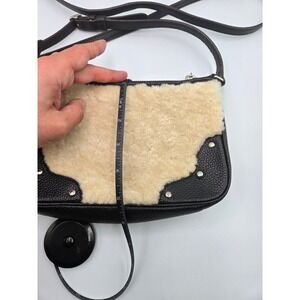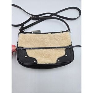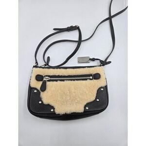 COACH Shearling Leather Crossbody Bag Black Studded Purse Designer