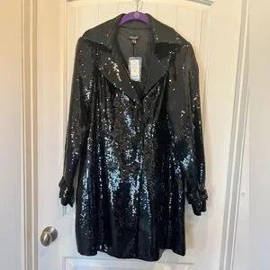 Bebe Sequin Trench Coat, Medium, Never worn with tags & extra buttons