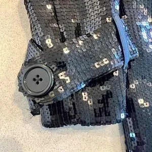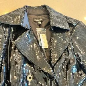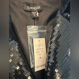 BEBE NWT SEQUIN TRENCH COAT BLACK SHINY TUXEDO COUTURE GALA FORMAL JACKET GLAMOR