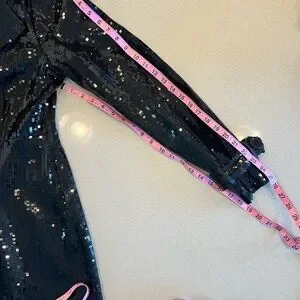Absolutely stunning high end couture wear. Bebe double breasted fully sequined trench coat. Buttoned shoulder epaulets. Side seamed pockets. Inner lined. Buttoned cuff straps.