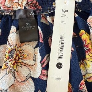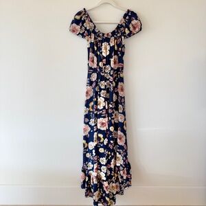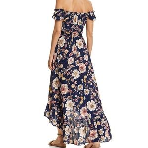 NWT Aqua Floral Off-Shoulder Ruffle Maxi Dress Navy Pink | Womens XS