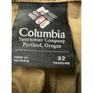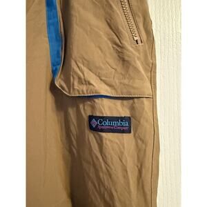 Columbia Mens 32 Regular Nylon Hiking Pants Tan Blue Trim Zip Pockets Outdoor