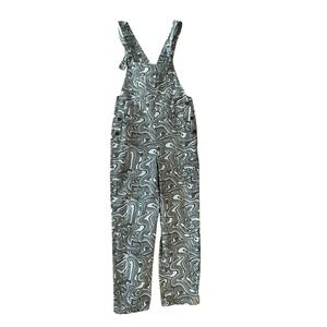 Lucy & Yak NWT Easton Dungarees Swirl Print Organic Cotton Teal Green- Size 6L