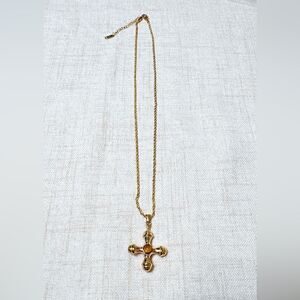Tiger eye vintage style boho cross pendant necklace in gold tone hardware
