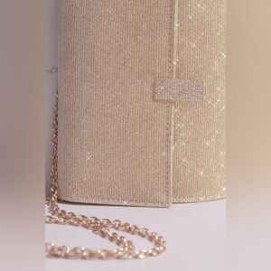 This elegant gold clutch bag is perfect for any occasion. Its shimmering design adds a touch of sophistication to your outfit.