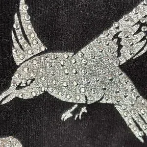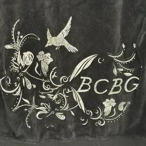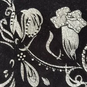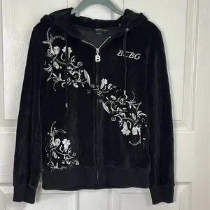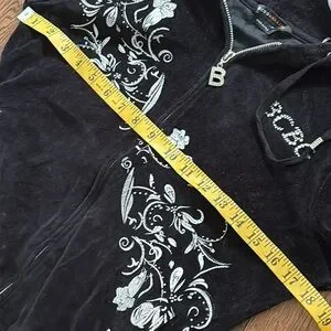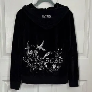 BCBG Y2K black velvet zip up hoodie rhinestone embellished size Medium birds