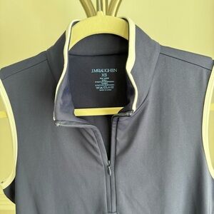 NWT J. McLaughlin blue fitted tank top, featuring a classic polo collar and a sleek sleeveless design. The white accents add a touch of sophistication. Size XS.