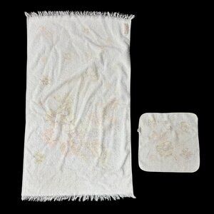 Vintage Floral Bath Towel Washcloth Set 1970s Dundee USA Yellow Orange Flowers