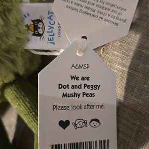 Jellycat Dot and Peggy Mushy Peas 6x3.5" Soft & Plush NWT