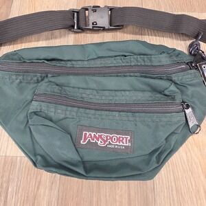Keywords: jansport fanny pack, belt bag, waist pack, outdoor gear, travel, hiking, running, cycling, vintage, retro, unisex, green bag, festival