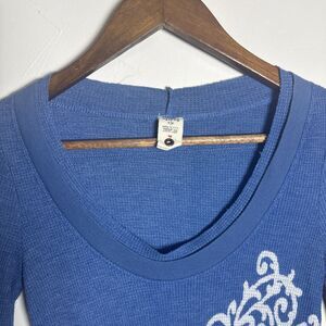 Free People Vintage? Blue Waffle Knit Thermal Floral Shirt Women's Size Small