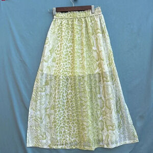 EUC- ALLSAINTS Clara Noche Pleated Midi Skirt Size 0 Yellow Animal Print Pockets