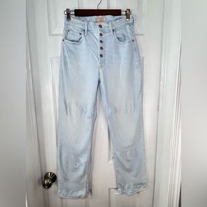 Stylish high-rise jeans in a soft light blue. Perfect for casual wear.
