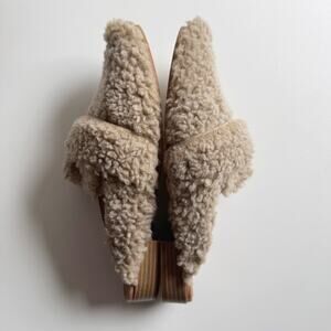 Free People Tan Sherpa At Ease Mule Loafers Size 39/8