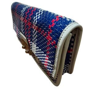 Kate spade clutch purse with dustbag blue white pink woven plaid front flap chic