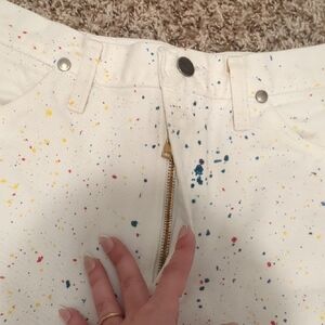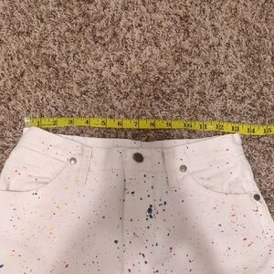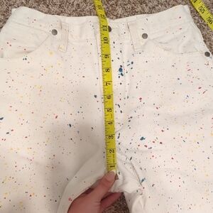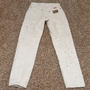 Wrangler vintage white paint splatter cowboy cut high rise slim taper leg jeans
