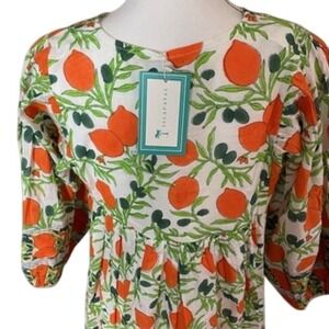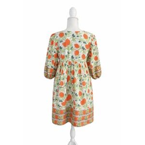 Islapayal 100% Cotton Block Print Mini Dress Citrus Floral Boho Tunic NWT XS