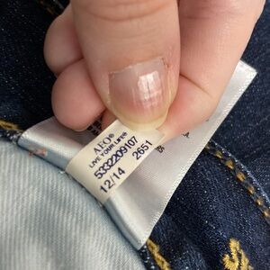 Comfortable denim skinny jeans with no distress marks/rips. Elevate your style with this rich colored dark blue jeans. The material is 99% cotton and 1% elastane. There are more American Eagle jeans listed too, see profile for more!