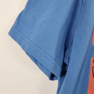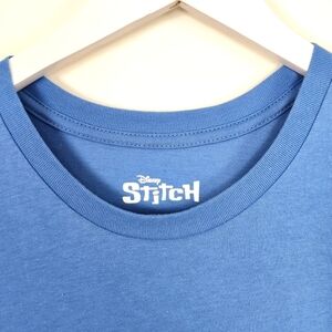 This Disney Lilo & Stitch T-shirt in size XL features a graphic print with the quote "OHANA MEANS FAMILY" on a blue background. The shirt has short sleeves and a crew neck, making it a comfortable option for everyday wear. Made from a blend of polyester and cotton, this T-shirt is breathable and easy to care for. With its regular fit and Disney character theme, this shirt is a perfect addition to any fan's collection.