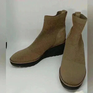NWOT Anne Klein Size 6 textile upper ankle boots in medium taupe with contrasting faux suede...pull on with wedge heel...