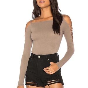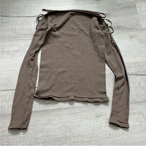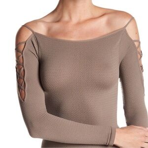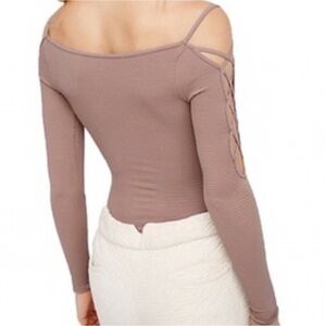 FREE PEOPLE Intimately Cold Shoulder Long Sleeve Top Stretch Nutmeg Tan