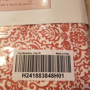 Northern Nights supina silky XL sheet set, includes flat, fitted, 1 pillowcase, 400 thread count, 100% cotton, held in a beautiful velcro sack, NWT. Coral color on creamy white, print is an India intricate pattern, beautiful. One other set available without the plastic covering.