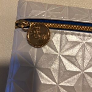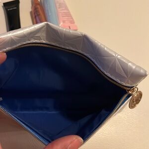ISPY White Embossed Geometric Print Blue Zipper Clutch Travel Cosmetic Bag
