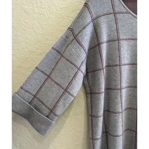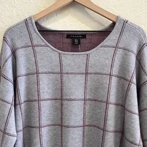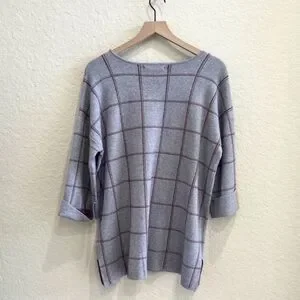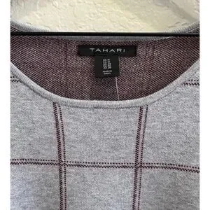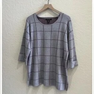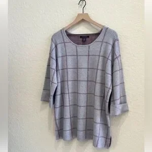 NWT TAHARI Pullover Plaid Tunic Knit Sweater Top 3/4 Sleeves Grey Red Women’s 1X