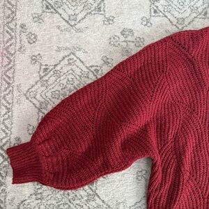 Chic burgundy mock neck sweater. Cozy knit with balloon half sleeves. New with tags. Size medium.