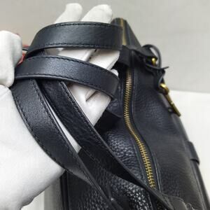 Fossil Black Pebbled Leather Front Pocket Zipper Closure Satchel Shoulder Bag