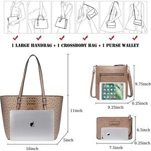[Superb Material] This womens tote purse made of vegan leather. The stitching is well made as smoothly to touch. The linging of this tote bag purse was used the supreme cloth. There's no chemical left in this women's purse. 3pcs in 1 set, it is convenient for you.