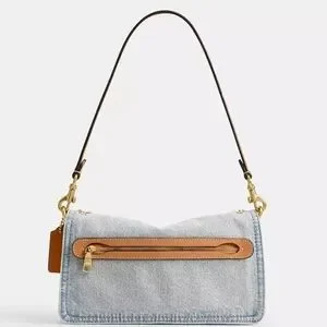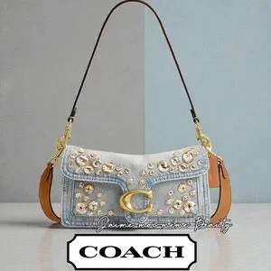 Stylish Coach shoulder bag with soft denim fabric and distressed golden crystals. Elegant and versatile design- dress up or down! Very limited edition and out of stock EVERYWHERE. This is the ONLY listing for this bag!