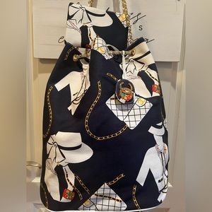 CHANEL Vintage Rare Coco Jumbo Bucket Tote Navy Gold Chain Bag Purse HOST PICK