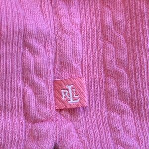 VTG Lauren Ralph Lauren Pink Cable Sweater Tee 3/4 Sleeve Cotton Light USA Large