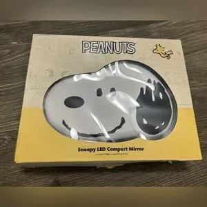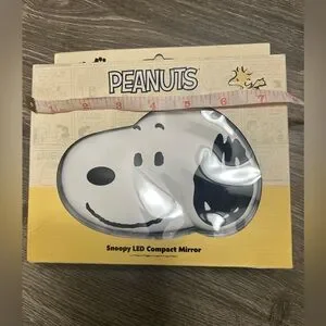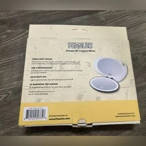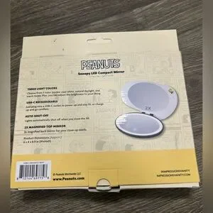 PEANUT . Snoopy LED Compact Mirror. Three light colors. USB - C Rechargeable. Auto Shut- Off. 2x Magnified Top Mirror. NEW