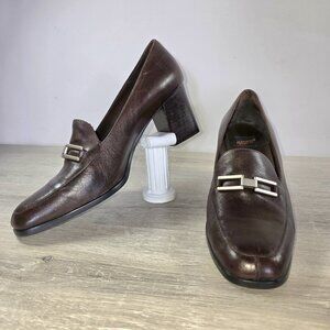 Aerosole Womens Brown Leather Loafers Shoes Sz 11B Office Pumps Block Heels