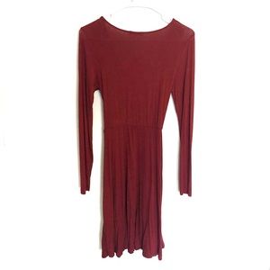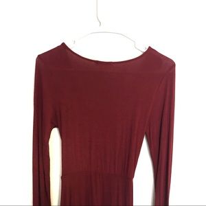 Heart & Hips Faux Wrap Dress Wine Red Long Sleeve