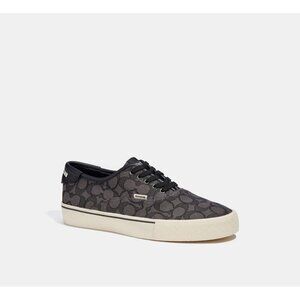 Coach Men's Size 11.5 Lace-up Sneakers Black Signature Jacquard Skate Low Top. An updated take on a classic sneaker style, this lace-up Skate is crafted of our Signature jacquard made with a blend of organic cotton and recycled polyester. Finished with smooth leather details, the cushioned insole and thick rubber sole make for comfortable, easy wear.